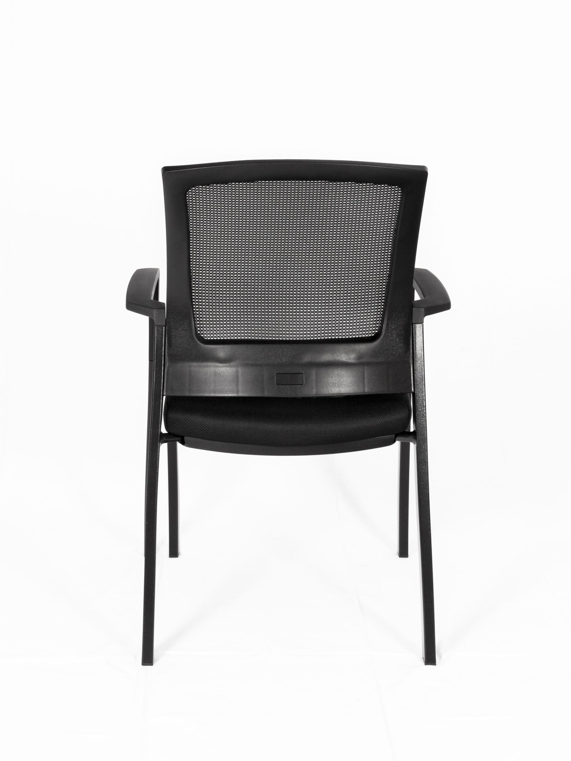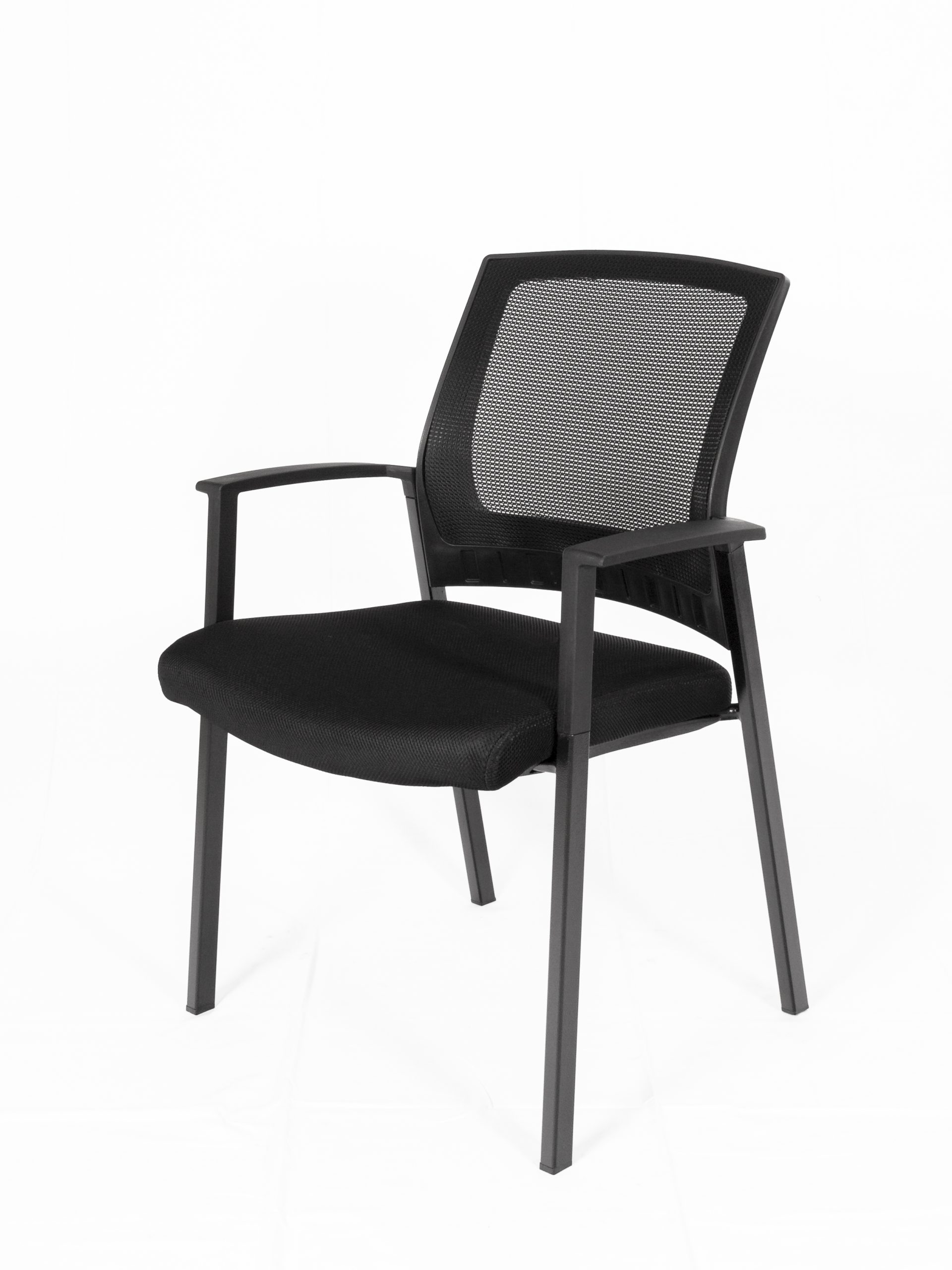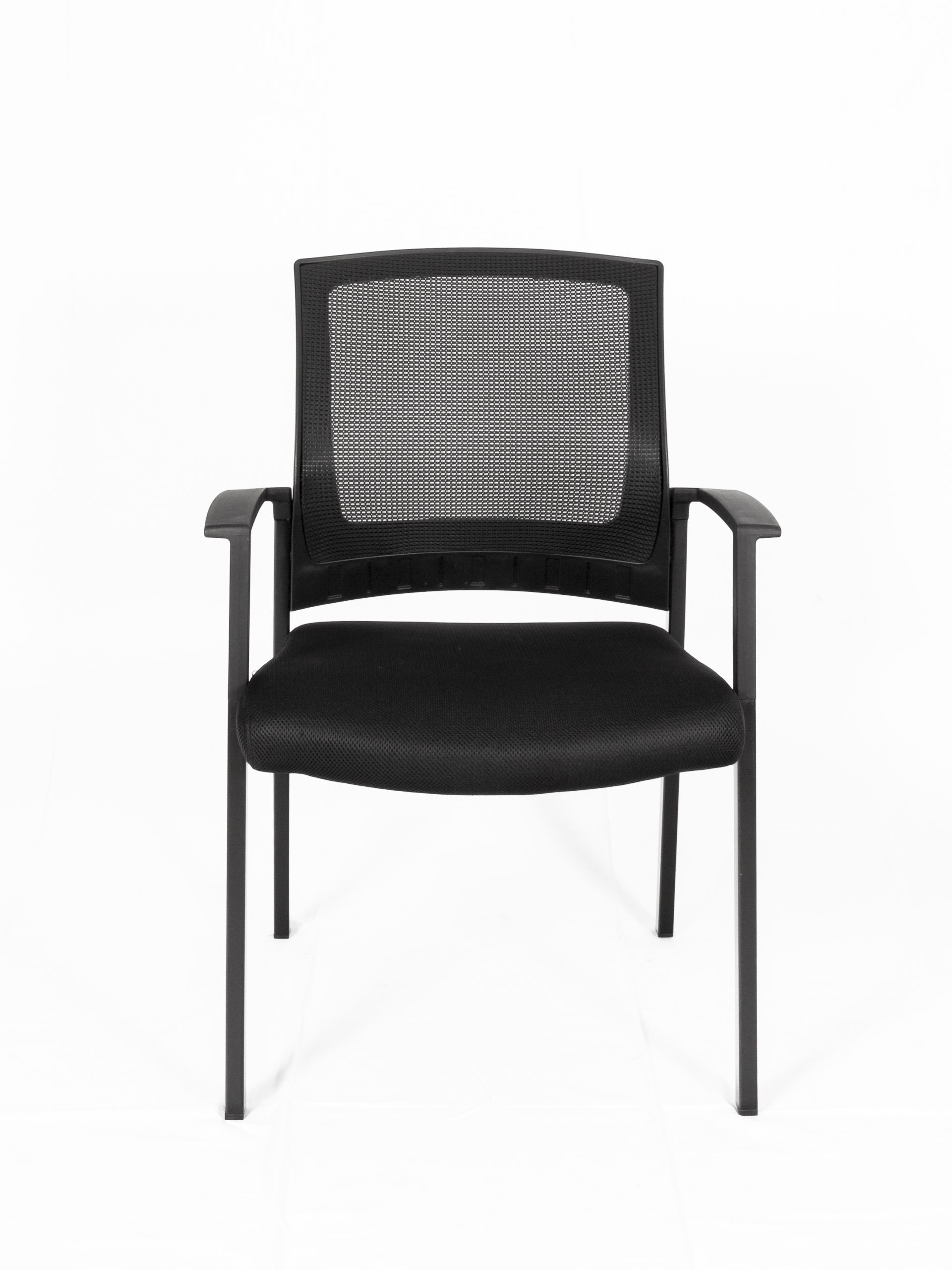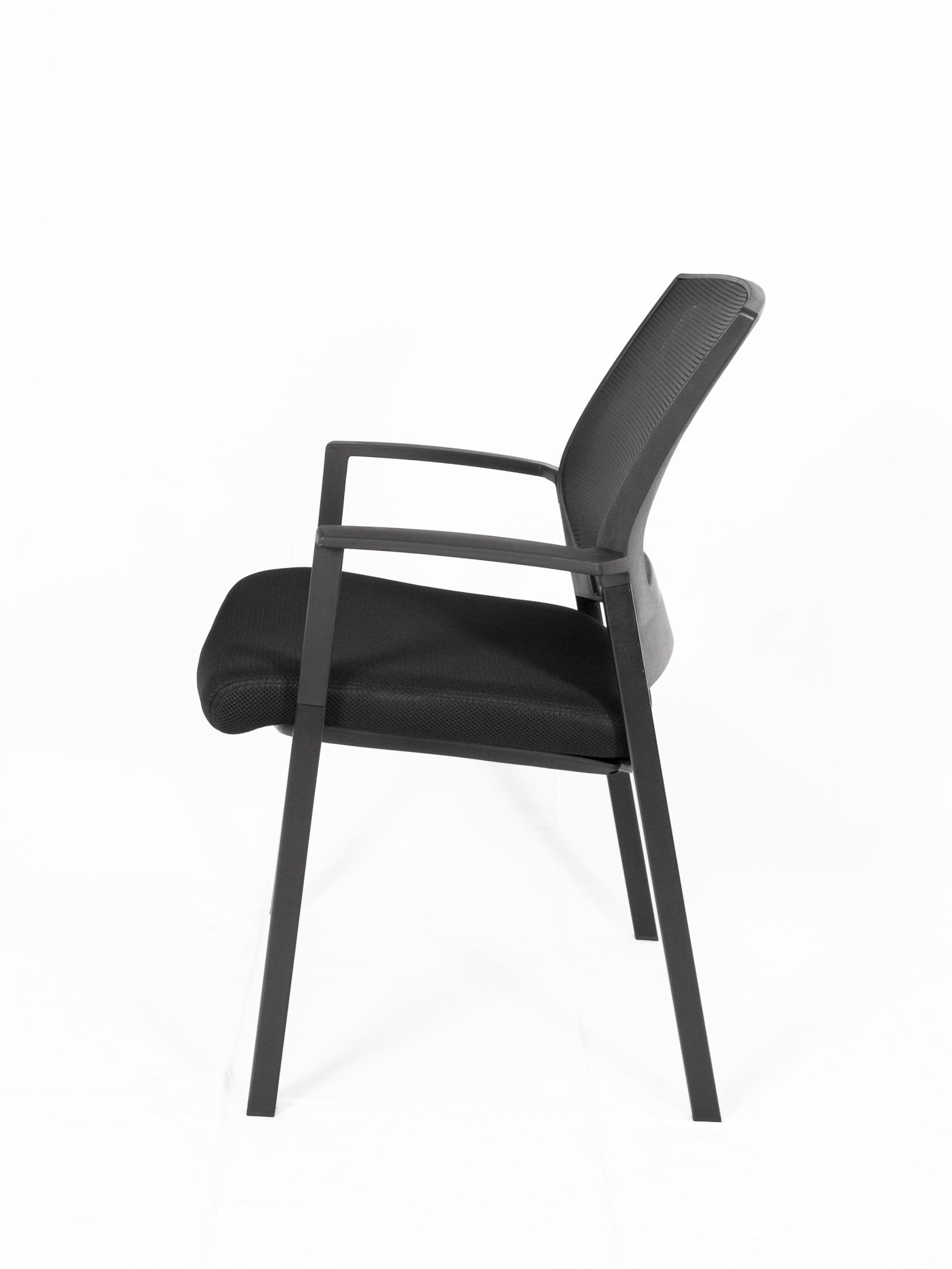 SILLA INTERLOCUTORA ESTRUCTURA NEGRA CUATRO PATAS ESPALDAR MALLA ASIENTO TAPIZADO EN MALLA BRAZOS FIJOS